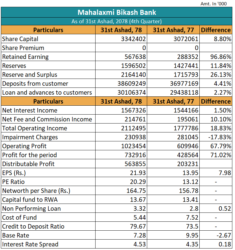 महालक्ष्मी विकास बैंक लिमिटेडले गत आर्थिक वर्षको चौथो त्रैमाससम्मको अपरिष्कृत वित्तीय विवरण सार्वजनिक गरेको छ।