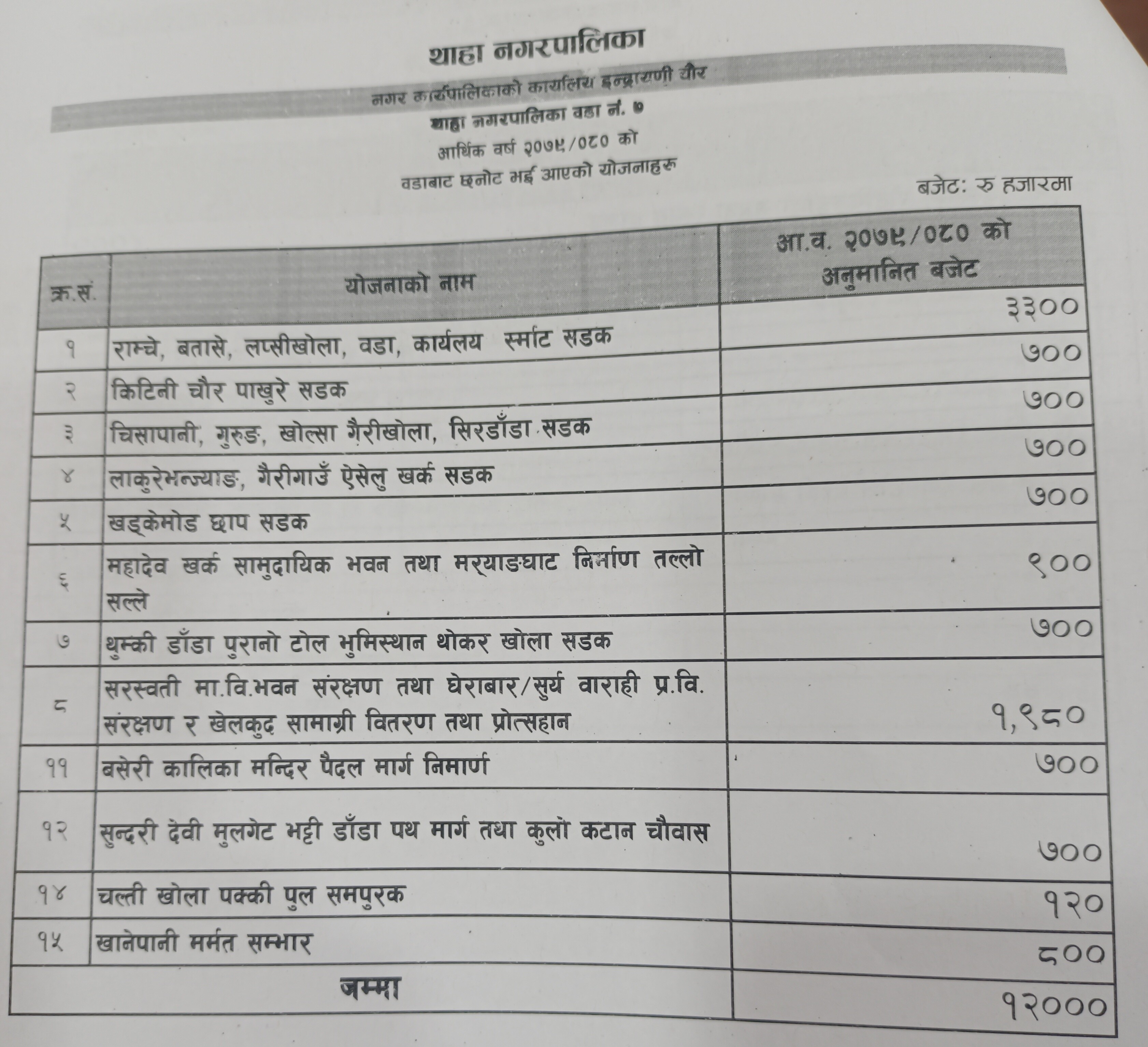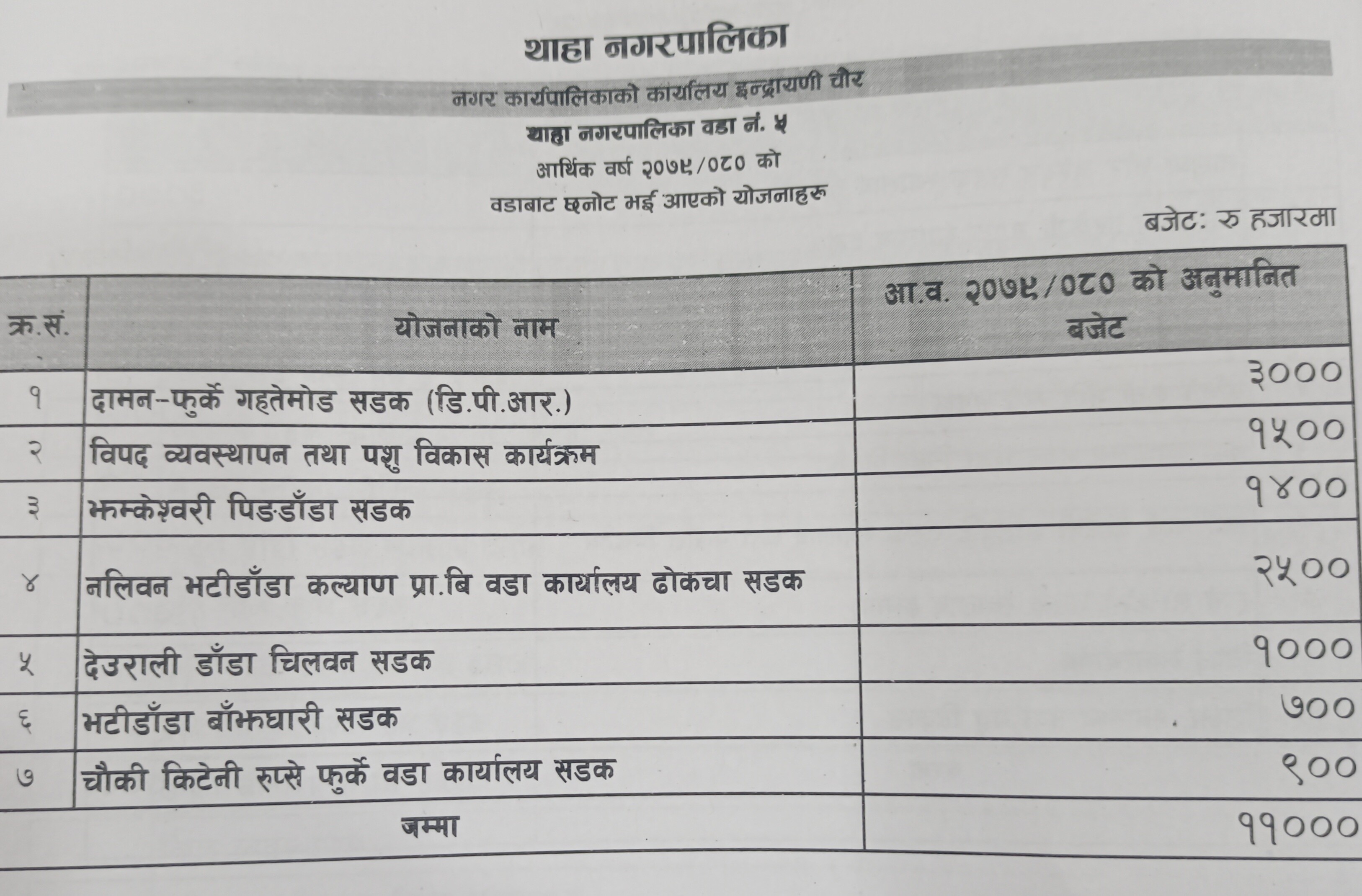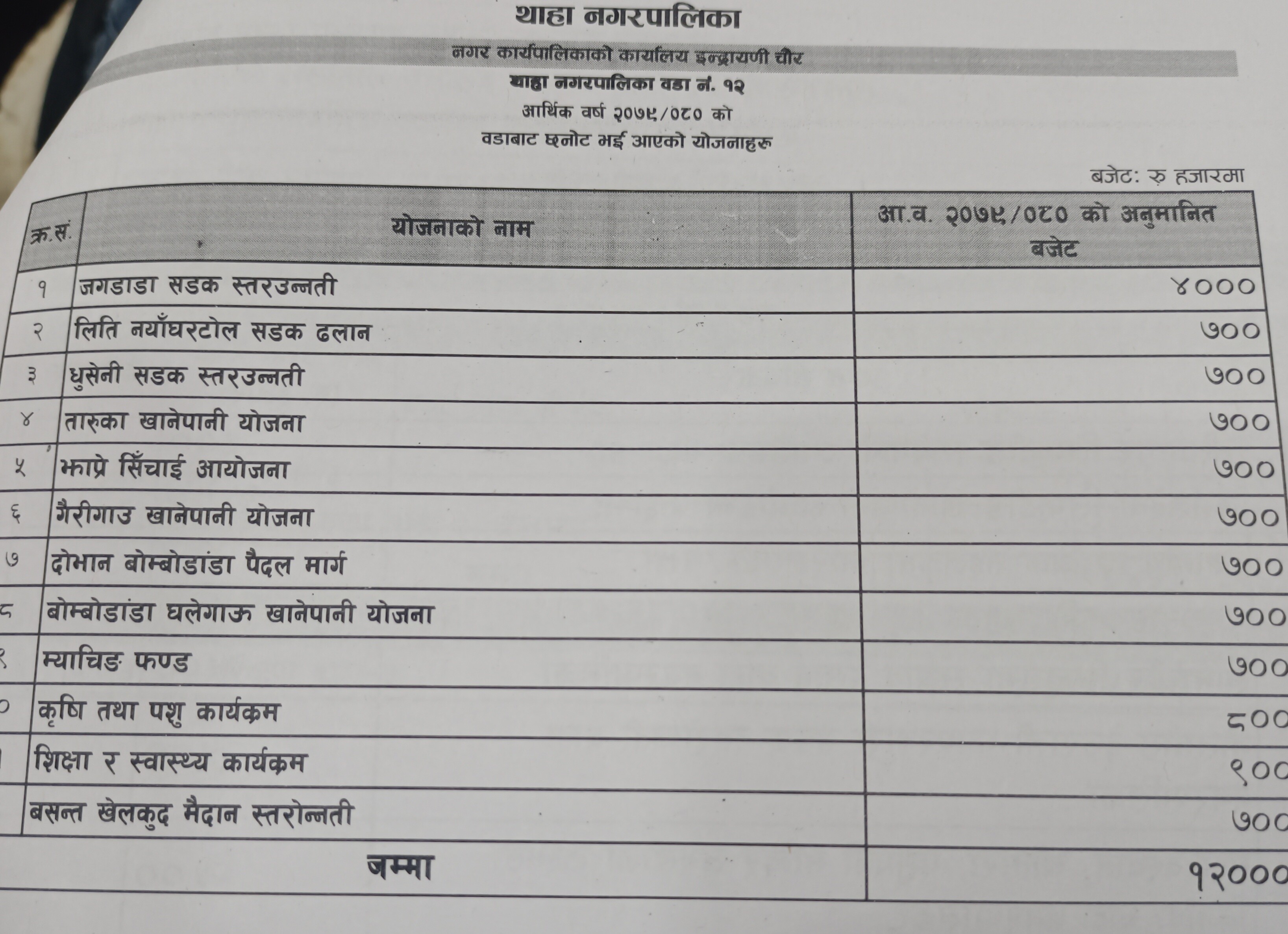 नगर प्रमुख बिष्णु बहादुर विष्टको अध्यक्षतामा भैरहेको सभामा नगर उपप्रमुख भरत गोपालीले कुल अर्ब ८ करोड ८४ लाख ७ हजार रुपैयाँको अनुमानित आय प्रस्तुत गरेका छन् । प्रस्तुत बजेटमा चालु खर्च ९ करोड ९७ लाख ५४ हजार, पुजिगत खर्च ५१ करोड ७२ लाख १३ हजार, विषयगत कार्यालय सशर्त अनुदान ३२ करोड १४ लाख ४० हजार र सामाजिक सुरक्षा तर्फ १५ करोड खर्चको अनुमान गरिएको छ ।