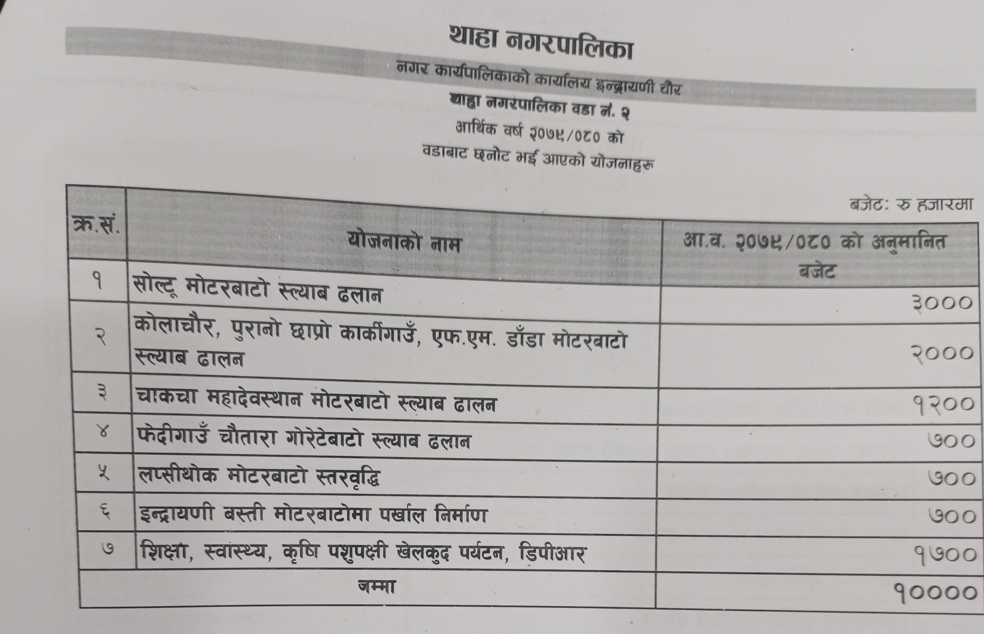 थाहानगर/१० असार